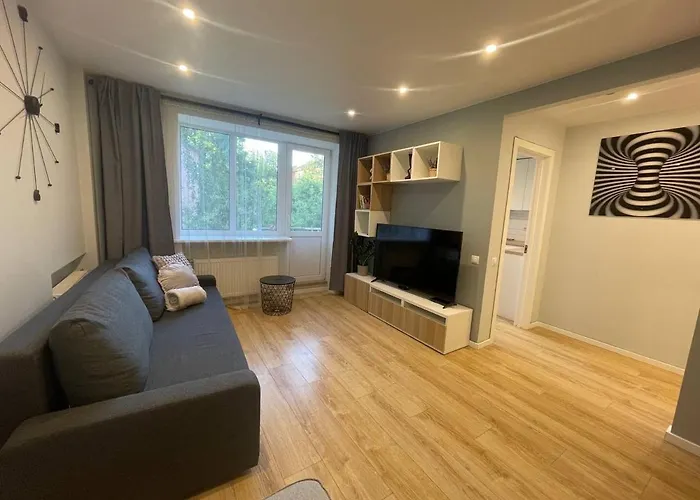 A Modern 1Br Haven Near Two Parks Apartman apartman vendégei autóval 15 percen belül elérhetik a Riga nemzetkozi repuloter repülőteret.